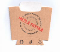 opakowania na frytki kartonowe - składane pudełka z tektury, w których można serwować frytki z dodatkami (tzw. loaded fries), z sosami lub sety dań smażonych,